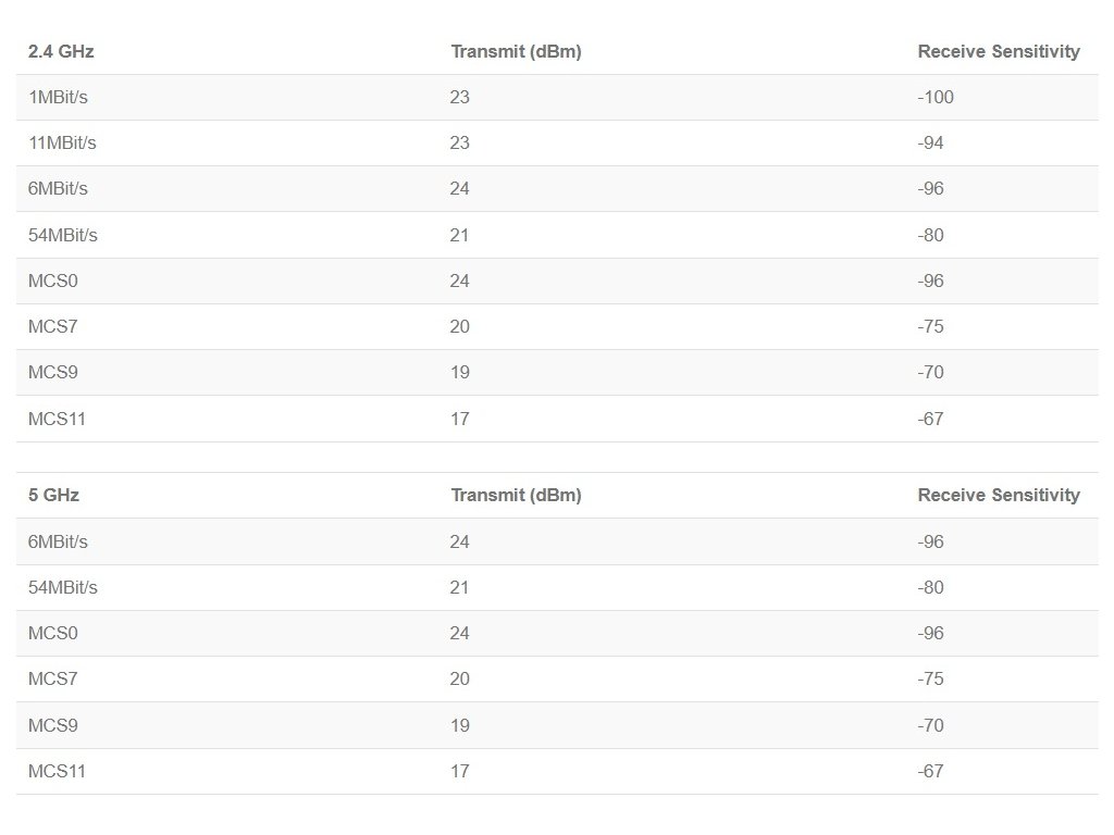 Standardy bezdrátového připojení 2,4 GHz: 802.11b/g/n/ax