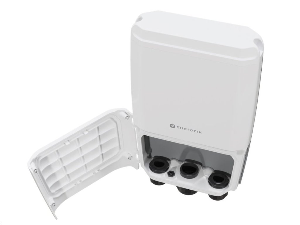 Venkovní 4-portový QSFP28 switch bez ventilátoru a s žebrováním na zadní straně a možností routingu nabízí Gigabitový ethernet pro management či PoE IN napájení (43 až 57 V DC nebo 802.3bt), 4 optické QSFP28 porty s rychlostí 1/10/25/40 a 100 Gbps, konzolový RJ45 port, DC konektor a svorkovnici s napájením 43 až 57 V DC. Switch má velmi robustní šasi s krytím proti vodě IP66, možností instalace na zeď či stožár a ve spodní části jsou připraveny dvířka na 4 šrouby s křížovou hlavou a 3 velké kabelové průchodky s dostačným prostorem na všechny kabely. Uvnitř zařízení je nainstalovaný jak RouterOS v7 s licencí L5 a SwitchOS, který je určený spíše pro jednodušší správu.
