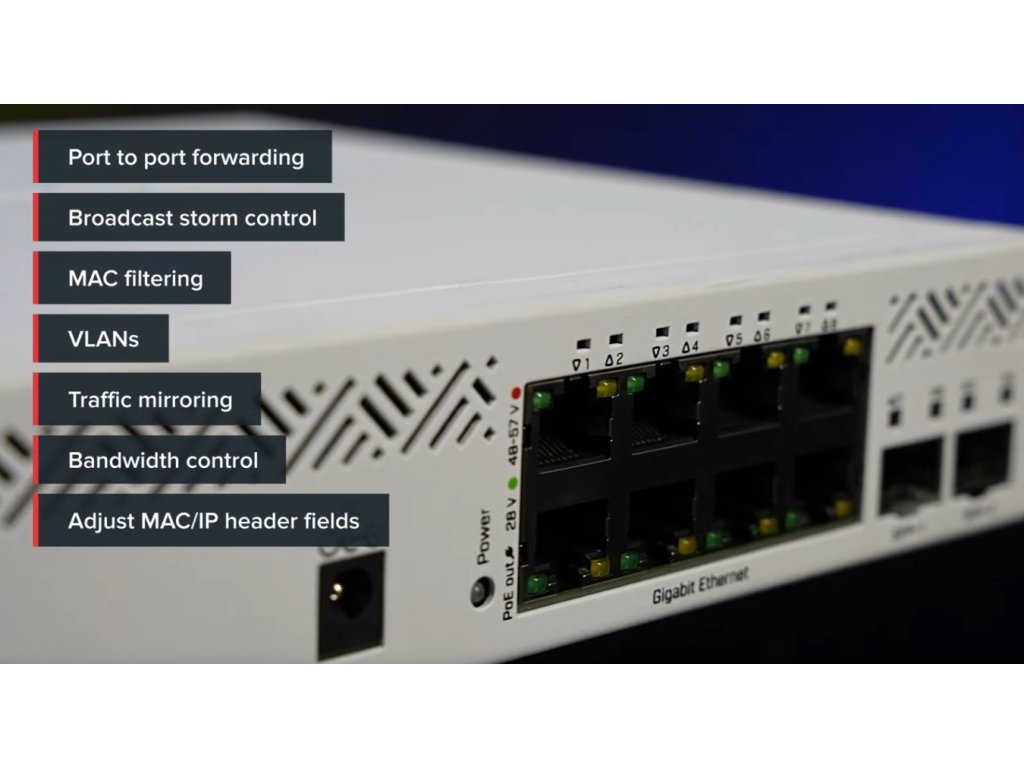 Součástí je také speciálně navržený operační systém Switch OS (SwOS) pro rychlé přepínání a velikou škálu nastavení. SwOS lze tedy plně nastavit z Vašeho webového prohlížeče. To Vám dává všechny základní funkce pro řiditelný přepínač (switch), plus další: Umožňuje spravovat port-to-port forwarding, filtr MAC adres, VLAN konfiguraci, mirror traffic, omezení trafiku a dokonce i nastavení MAC a IP hlaviček.