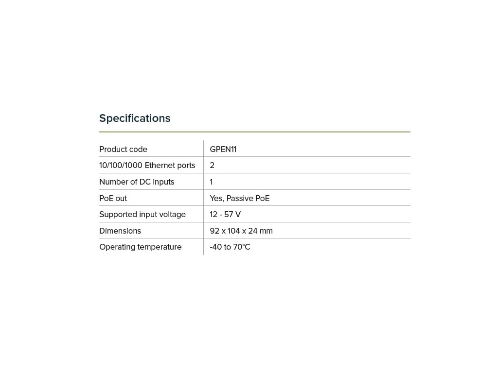 PoE out: Yes (Passive PoE)