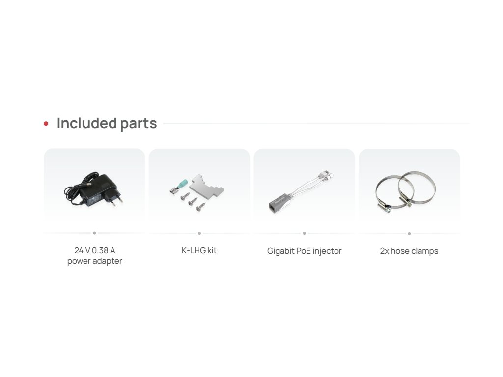 Součástí dodávky je 24V napájecí zdroj a gigabitový PoE injektor.