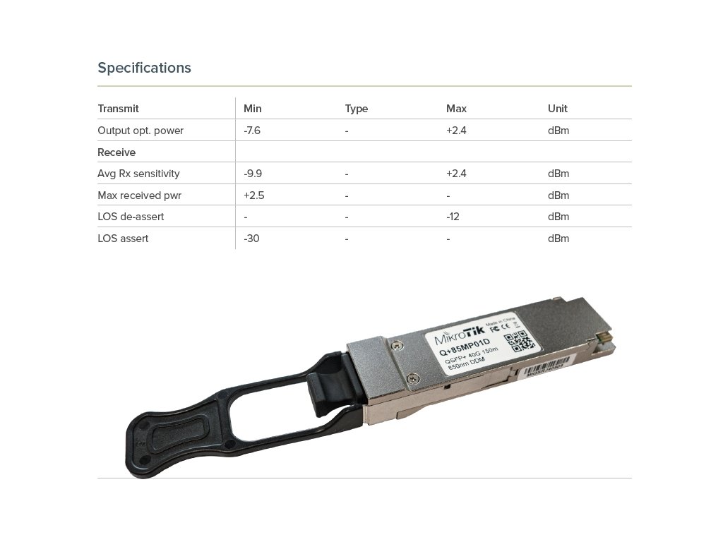 MikroTik QSFP+ optický modul Q+85MP01D 40 Gbps 850nm