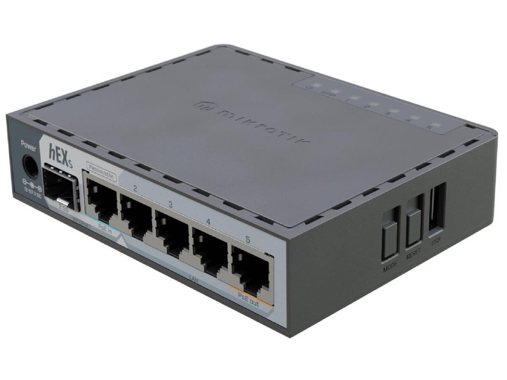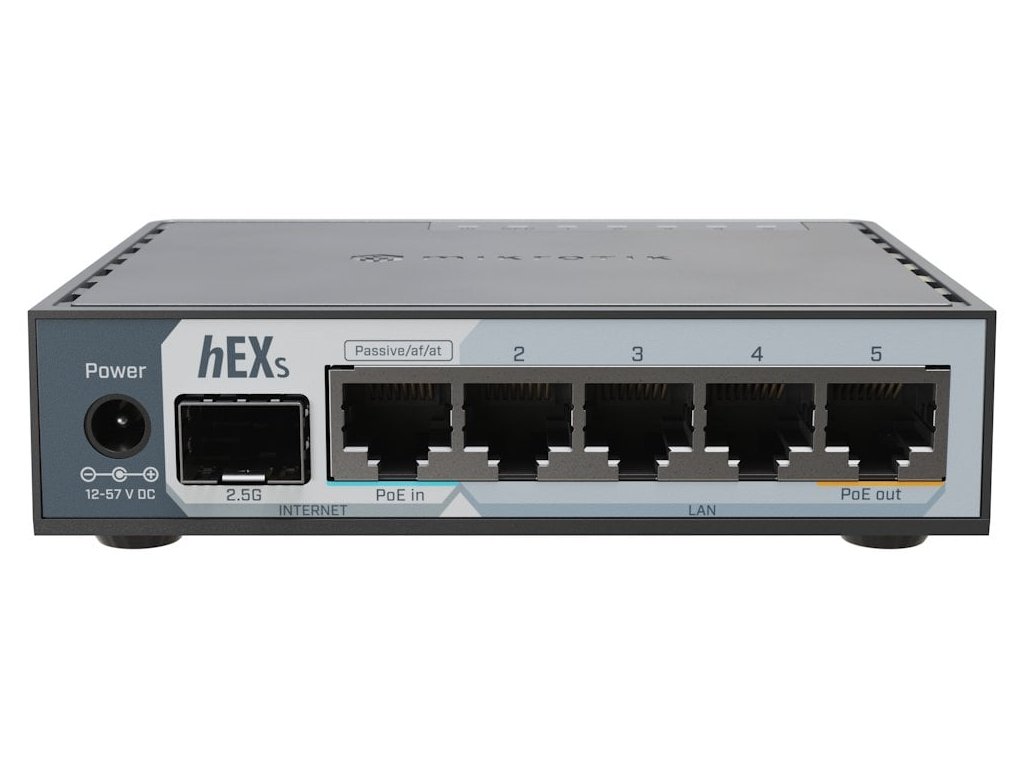 MikroTik hEX S je kompaktní, výkonný a cenově dostupný drátový router, který je ideální volbou pro chytré domácnosti nebo menší kanceláře. Zařízení nabízí 5 Gigabitových ETH portů, přičemž Ether1 podporuje PoE-in a Ether5 PoE-out, což umožňuje napájení dalšího zařízení přímo z routeru. Výstupní napětí na PoE-out portu odpovídá vstupnímu napájení routeru. Hlavní předností je ale 2.5G SFP port, díky kterému lze plně využít potenciál rychlého připojení – například k NAS serveru nebo optické síti poskytovatele. Router lze napájet přes DC konektor 12-57V, přes PoE-in v rozmezí 18-57V nebo standardu 802.3af/at.
