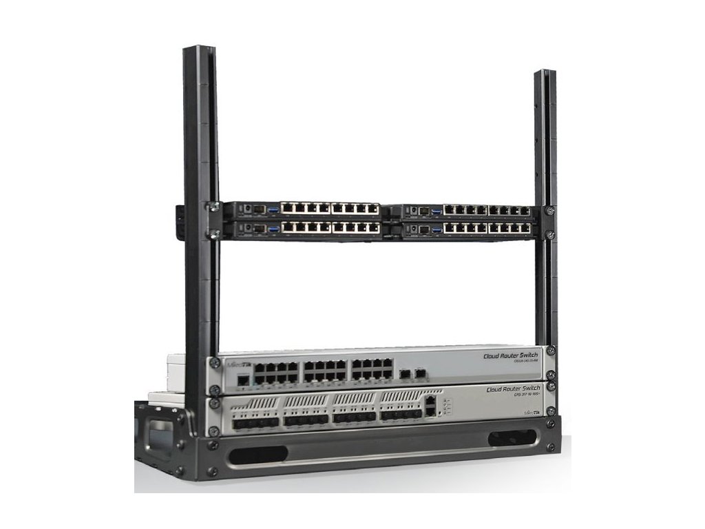 Velmi elegantní kovový a lehce smontovatelný montážní rám od MikroTiku o velikosti 19" s výškou 10U je vhodný na stůl do laboratoří, výstavy nebo na předváděcí akce. Nejedná se o nový a revoluční produkt, jedná se spíše o maličkost, která může administrátorům, inženýrům, testerům ušetřit trochu práce při testování či výstavě aktivních i pasivních prvků s instalací do racku.
