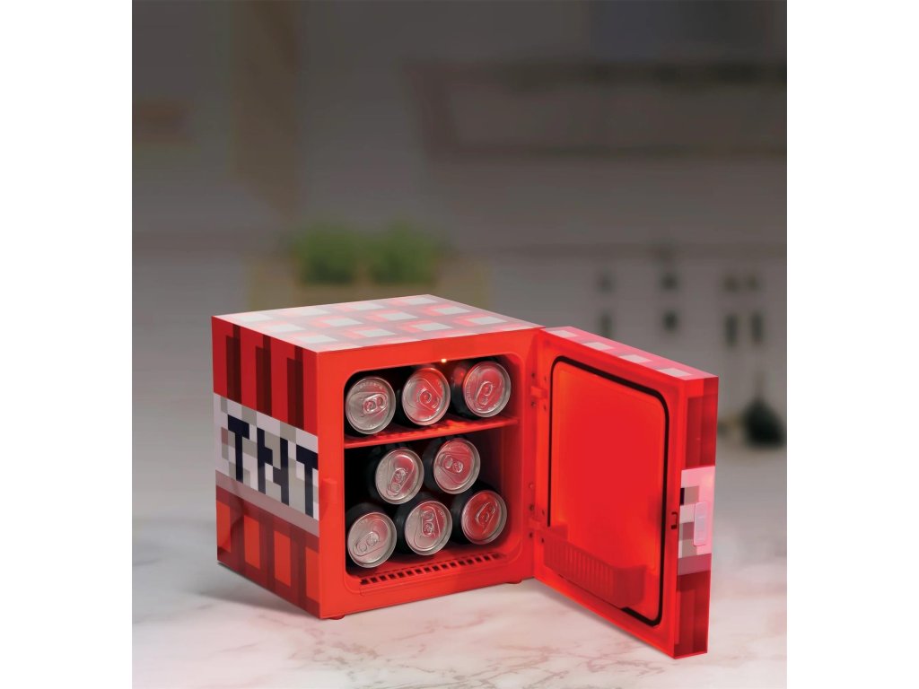 Mini chladnička, objem 6,7 L, červené osvětlení, ve tvaru TNT bloku z Minecraftu