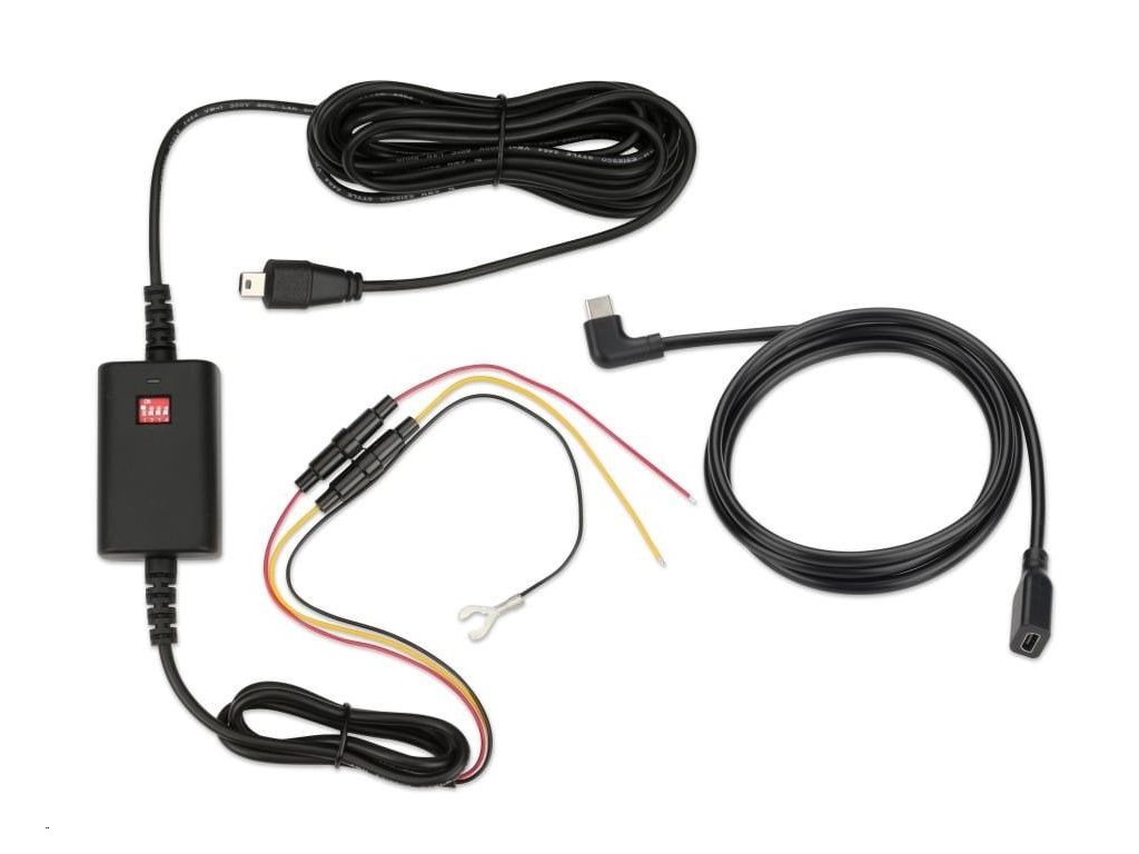 Napájecí kabel je připojen přímo k autobaterii, což umožňuje nepřetržité napájení parkovacího režimu v kameře Mio, i když je vůz zaparkován. K dispozici je bezpečnostní nastavení, které zabraňuje úplnému vybití autobaterie při vypnutém motoru.