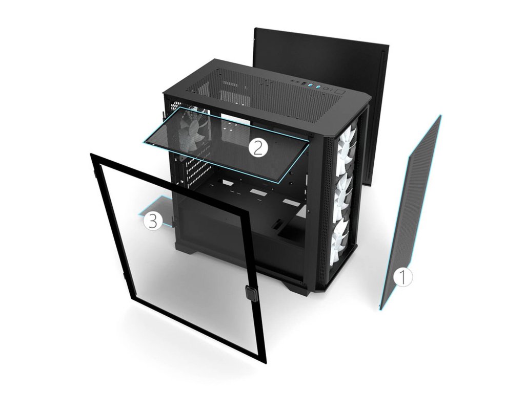 Boční panel z tvrzeného skla s panty (pro snadné otevírání).