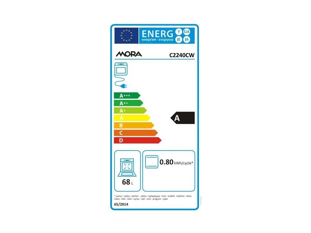 Elektrický sporák Mora s označením C 2240 CW v klasickém bílém provedení nabízí spojení sklokeramické varné desky a klasické pečící trouby. Trouba disponuje objemem 68 litrů, a tudíž nabízí dostatečný prostor k pečení i pro větší rodiny. Varná deska je vyrobena z tepelně odolného materiálu, který se snadno čistí a vydrží až 100kg zátěž. Je vybavena o ukazatel zbytkového tepla, který světelně upozorňuje na fakt, že povrch desky je stále horký a nebezpečný na dotek.