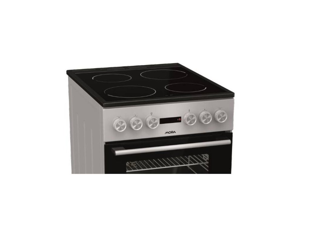 Elektrický sporák Mora C 5245 DS v nerezovém provedení s černými prvky krásně zapadne do každé kuchyně. S maximálním výkonem 9 kW rychle a efektivně upraví vaše jídlo pomocí topných těles, ventilátoru a páry. Sklokeramická deska má 4 varné zóny různých velikostí a objemná elektrická trouba s vnitřním objemem 70 l nabízí širokou škálu způsobů ohřevu, včetně pizza programu nebo program pro mražená a hotová jídla.
