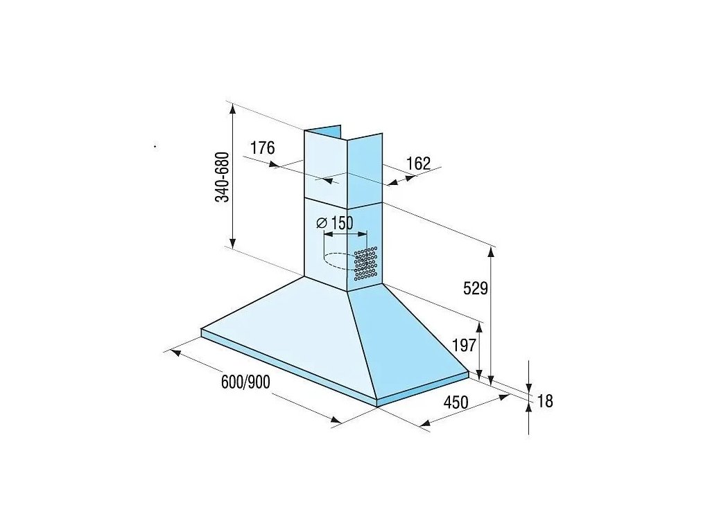 komínová digestoř • 60 cm • 3 rychlosti • posuvné ovládání • výkon 395 m3/hod • LED osvětlení 1× 3 W • hliníkové omyvatelné filtry • zpětná klapka • energetická třída D • hlučnost 61 dB • horní odtah