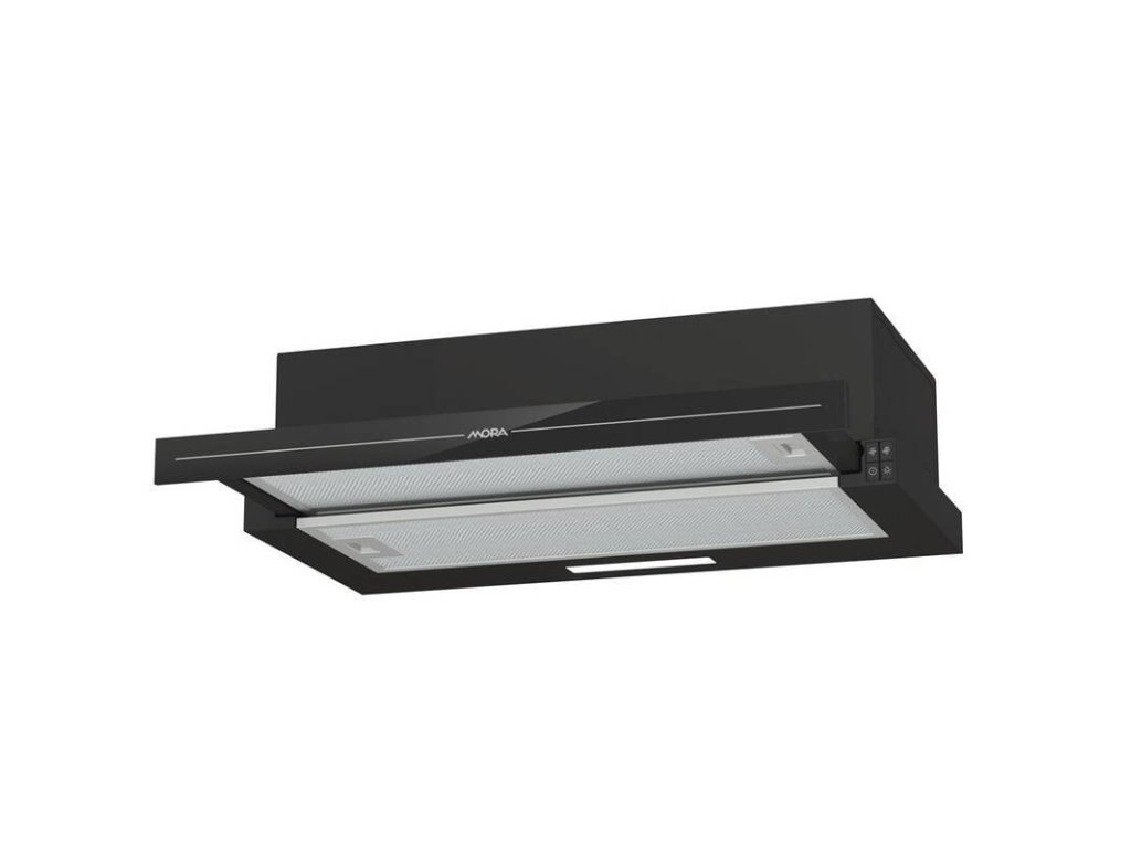 Vestavný výsuvný odsavač par MORA OT 652 GB v černém provedení s výkonem 350 m3/h spolehlivě odstraní z kuchyně všechny nežádoucí pachy. Díky posuvnému čelu odsavač dokonale splyne s kuchyňskou linkou, protože motor s horním odtahem je skrytý uvnitř skříňky. Odsavač má tlačítkové 3 rychlostní ovládání umístěné pod lištou a LED osvětlení s výkonem 2,1 W, které perfektně osvítí varnou plochu a vy tak budete dokonale vidět do hrnců či pánví na připravovaný pokrm. Je opatřen omyvatelnými hliníkovými filtry proti mastnotě s polyuretanovou pěnou, které lze mýt v myčce. Při dokoupení uhlíkových filtrů lze odsavač provozovat i na recirkulaci.