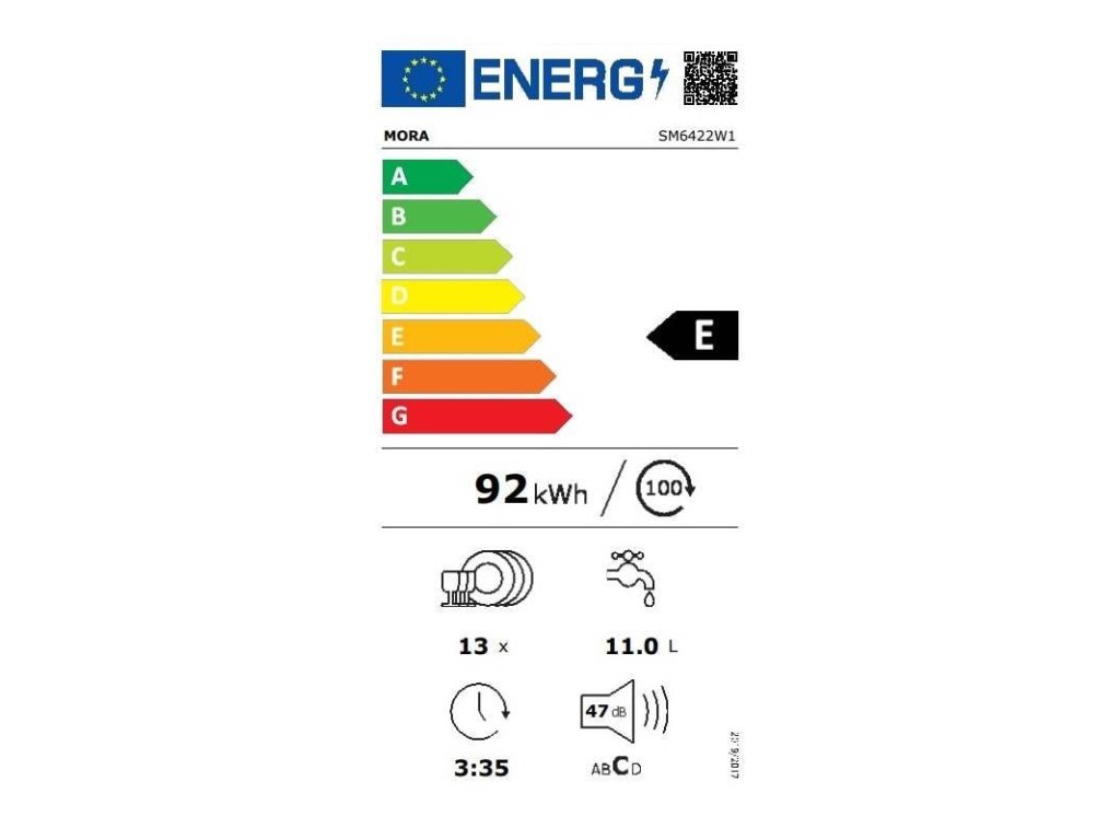 Volně stojící myčka MORA SM 6422 W1 v energetické třídě E ve standardní šířce 60 cm má kapacitu 13 sad nádobí. Je vybavena dvěma koši a příborovým košíkem. Ovládací panel je opatřen dotykovým ovládáním s displejem. Praktická funkce RychléMytí umožňuje zkrátit délku vybraných programů. Samozřejmostí je úsporný ECO program nebo praktický odložený start, který umožňuje nastavení startu programu až do 24 hodin. Myčka má navíc praktický samočisticí filtr, který automaticky odstraní zbytky mastnoty a jídla ve filtru a zamezí nesprávnému chodu spotřebiče. Má také automatický program pro čištění celého vnitřku myčky včetně ramen a trysek. Se systémem AquaStop se nemusíte obávat nemilého překvapení v podobě vytopení.