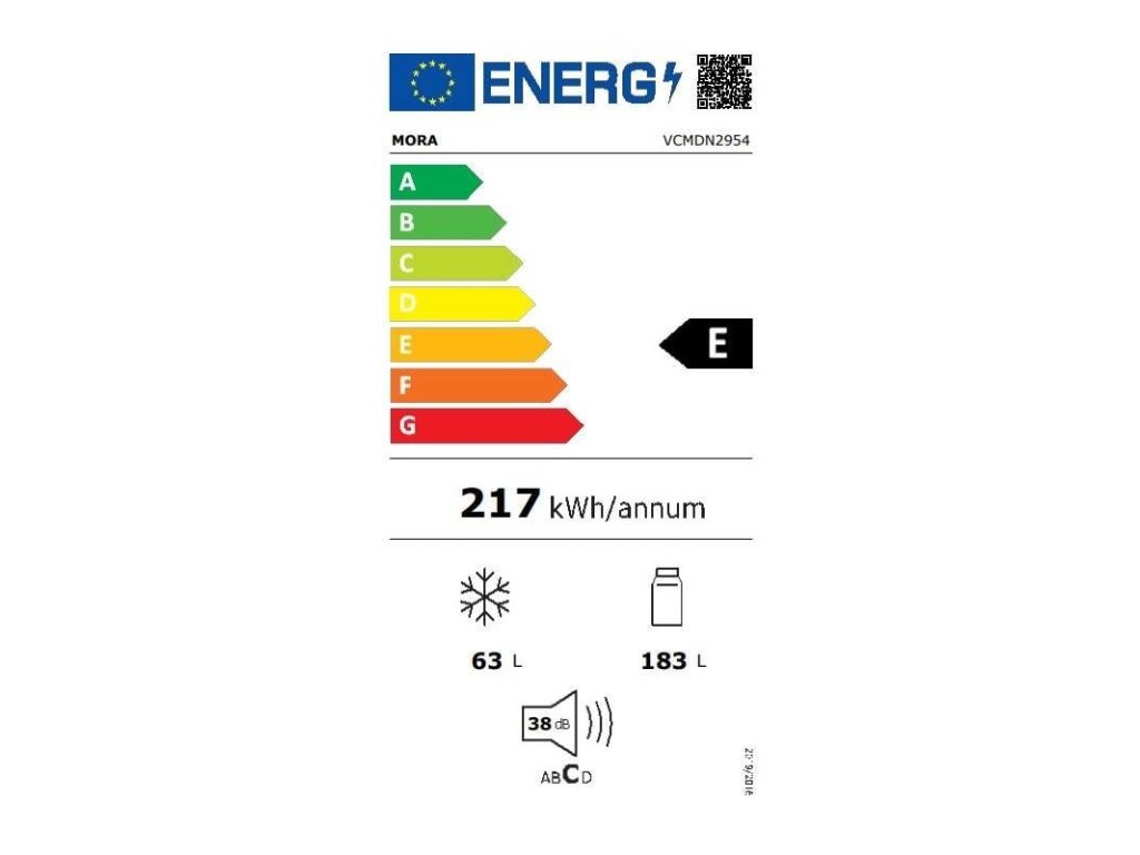 Vestavná lednice s mrazákem MORA VCMDN 2954 se pyšní štědrým objemem, a proto se hodí do prostornějších kuchyní a početnějších rodin. Samotná chladnička nabízí celkem 183 l, je tedy perfektní pro méně početné rodiny. Pro uložení a uspořádání všeho potřebného budete mít k dispozici 2 police. Prostor mrazáku slibuje 63 l. Mrazák je členěn na 3 přihrádky. Vestavná lednice využívá k chodu šetrné chladivo R600a. Rozměry lednice MORA dosahují 177,2 × 54 × 54 cm (V׊×H). Hmotnost lednice je 53 kg.
