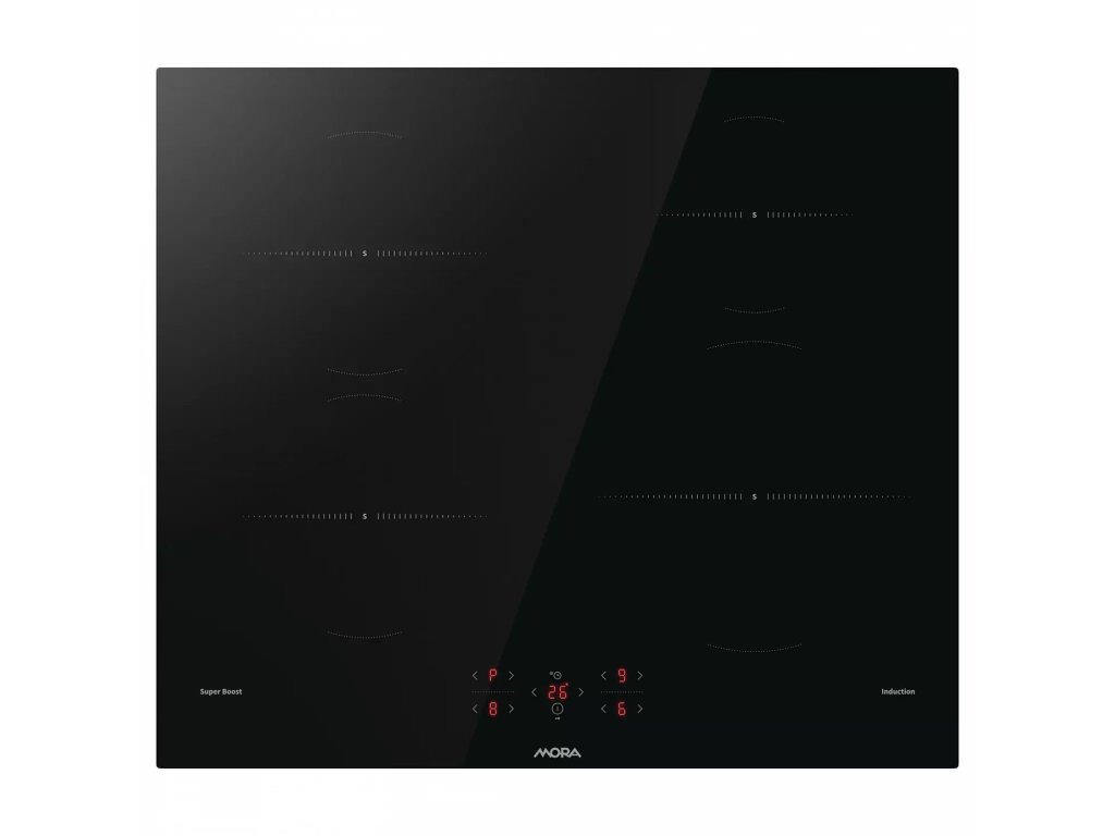 Indukční vestavná sklokeramická deska MORA VDI 65D C s praktickými broušenými hranami, díky čemuž ji lze jednoduše zabudovat i do roviny s pracovní deskou, disponuje 4 indukčními zónami, které zahřívají jen dno nádoby a z důvodu nízké teploty povrchu varné desky nedojde k připálení a deska se velmi snadno čistí. Indukční vaření je nejen rychlé, úsporné, ale také velmi bezpečné. Varná deska disponuje extra výkonem SuperBoost, který zvyšuje intenzitu ohřívání, pro zkrácení času, potřebného na ohřev. S funkcí Timer lze nastavit časovač vaření až na 99 minut a varná deska se po uplynutí času automaticky vypne. Díky dětské pojistce nyní nechat děti v kuchyni bez dozoru nebylo nikdy bezpečnější, protože tato funkce jim brání plotýnku zapnout.