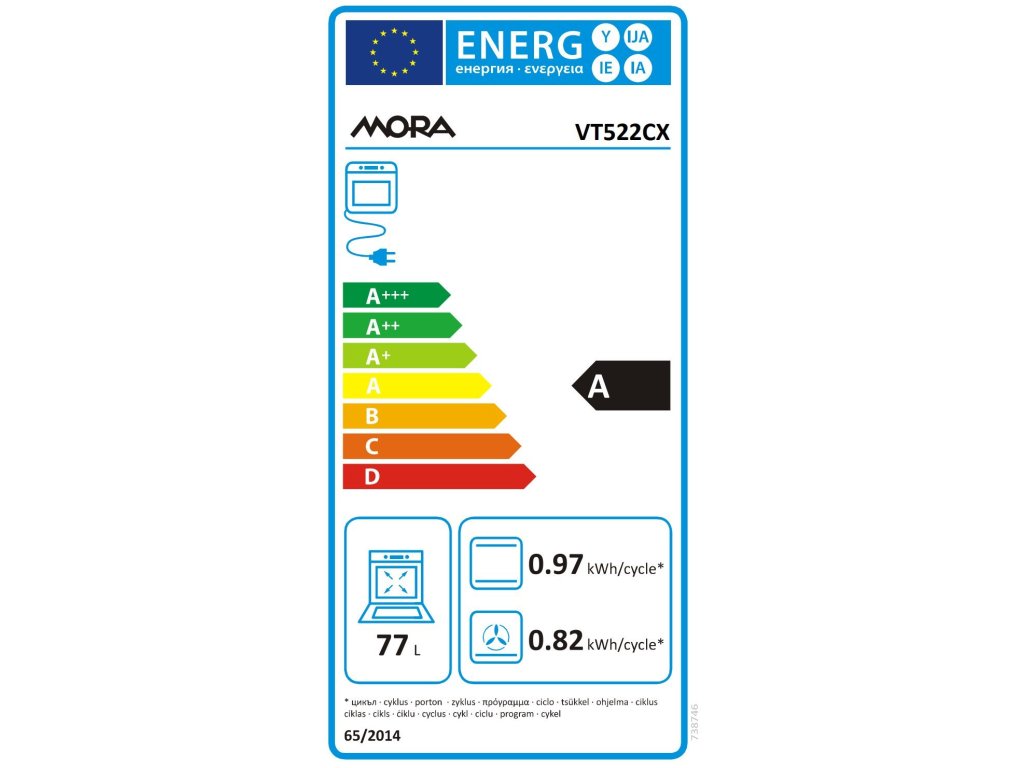Ačkoliv Mora VT 522 CX disponuje velkým objemem 77 litrů, nezvyšuje se při pečení spotřeba energie. Smaltovaný povrch s trojitým nátěrem a kvalitní zasklení dvířek poskytuje dostatečnou izolaci, aby teplo při pečení zůstalo uvnitř trouby a nikam neunikalo.