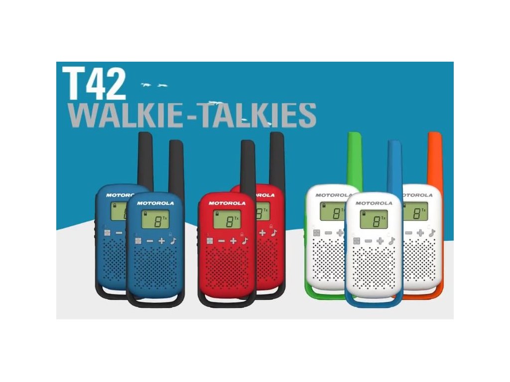 Motorola Talkabout T42 je jsou základní jednoduché vysílačky vhodné pro kempování, v létě na pláži nebo jen hraní na zahradě.