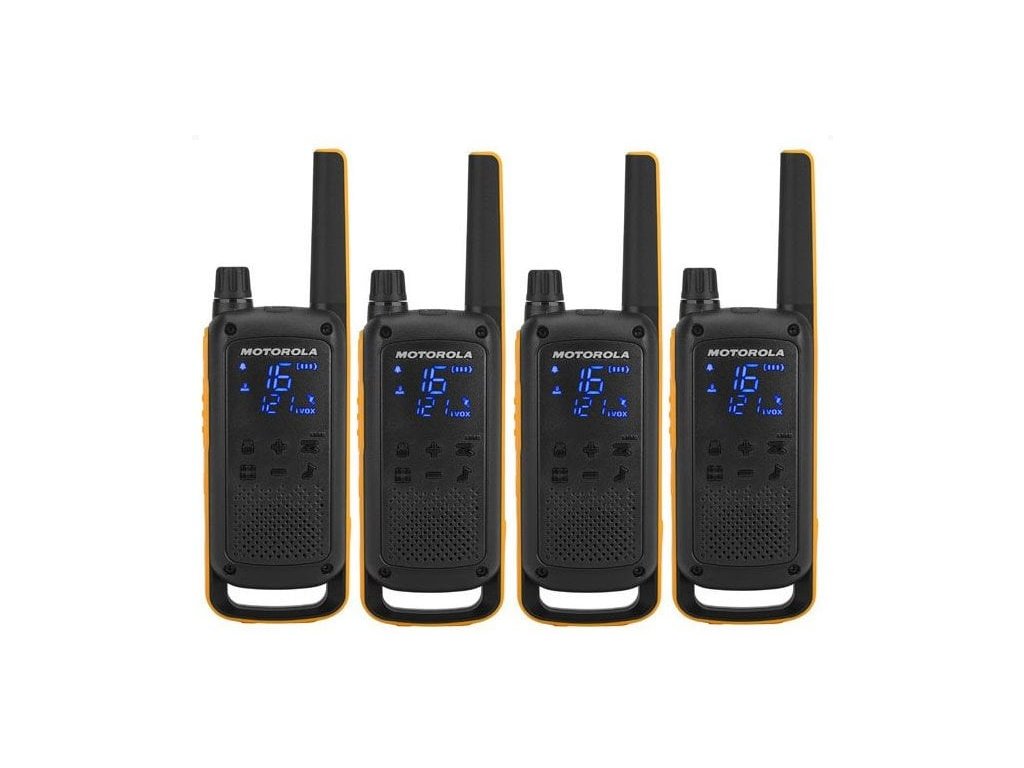 Vysílačky s dosahem až 10 km, IPx4 ochranou, LED svítilnou, vibračním upozorněním a příslušenstvím v praktickém pouzdře.