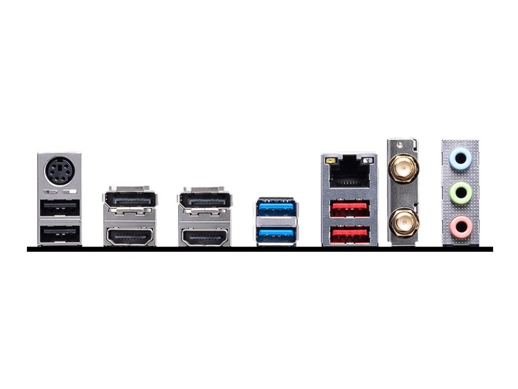 Deska je vybavena grafickými výstupy pro použití s procesory s integrovaným grafickým jádrem. Základní deska grafickou kartu neobsahuje a bez použití odpovídajícího procesoru, budou tyto výstupy nefunkční.