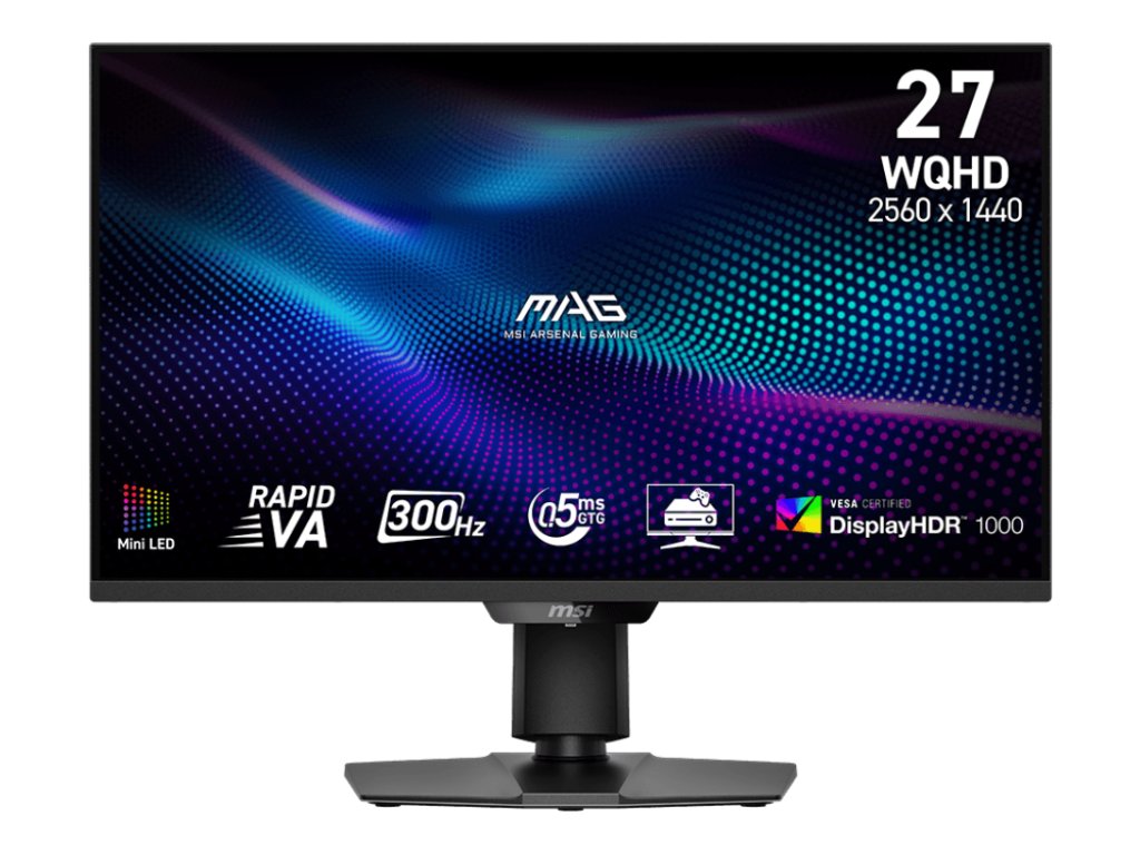 Monitor - 27" VA WQHD displej (2560x1440px), Frekvence 300 Hz, Formát obrazu 16:9, Doba odezvy 0,5 ms, Kontrast 4500:1, Jas 400 cd/m2, HDMI, DisplayPort, Černá, Rovný