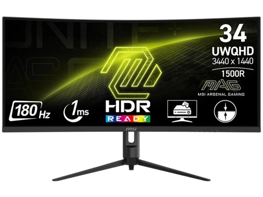 herní monitor 34" VA 3440x1440, prohnutý, 1500R, 180Hz, 1ms