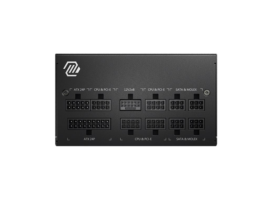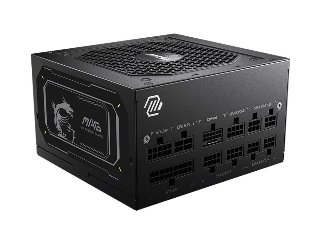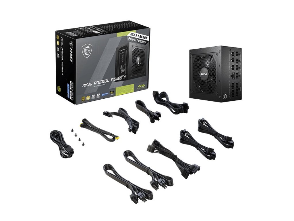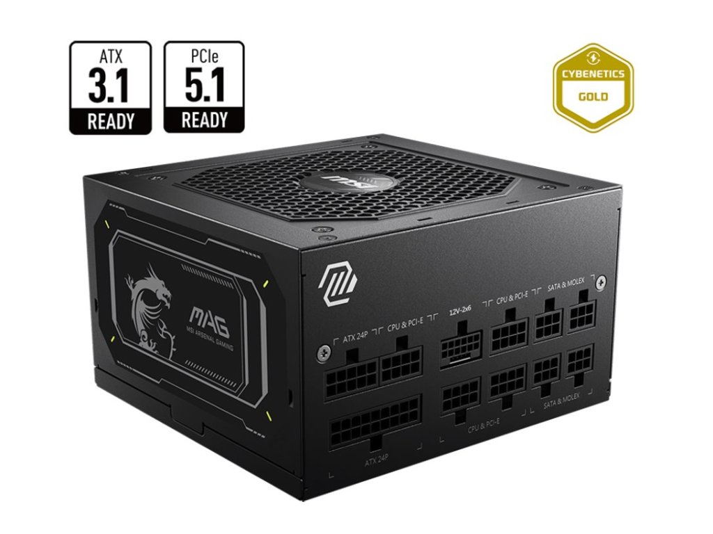 Napájecí zdroj o výkonu 750 W je osazen 120 mm ventilátorem. Zdroj splňuje certifikaci 80PLUS Gold. Verze ATX 3.1, PCIe 5.1 ready.