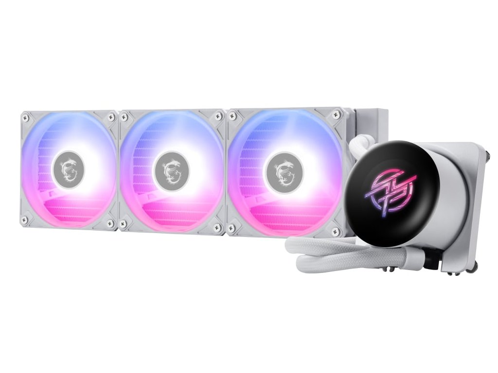 MSI MPG CoreLiquid P360 představuje vrchol designu a funkčnosti v oblasti vodního chlazení. Vyniká elegantním minimalistickým designem inspirovaným tvarem kapky vody s plně zakřiveným skleněným krytem a dokonale skrytými kabely díky technologii Streamline. Chladič je vybaven 2,1" IPS LCD displejem s rozlišením 480 × 480 pixelů a jasem 600 nitů, který slouží jako sekundární zobrazovací zařízení pro monitoring systému nebo přehrávání vlastního obsahu.