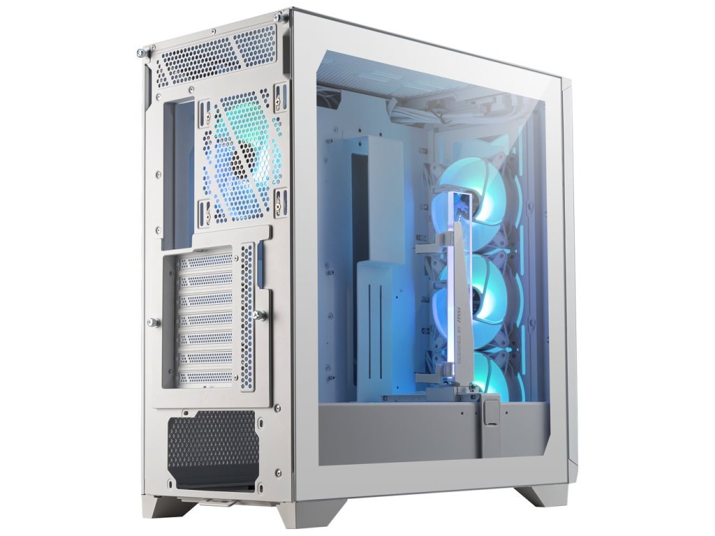 Moderní počítačová skříň s neotřelým designem, průhlednou bočnicí z temperovaného skla a poloprůhledným čelem s perforací pro optimální proudění vzduchu. Formát Middle Tower nabízí dostatek prostoru pro uložení šesti 2,5" disků, dvou 3,5" disků a až 12 ventilátorů. Předinstalovány jsou čtyři 120 mm ventilátory s adresovatelným RGB podsvícením. Rychlou změnu podsvícení umožňuje tlačítko na horním panelu. Zde se také nachází dva porty USB 3.0, jeden port USB-C, sluchátkový výstup a audio vstup pro mikrofon. Ve skříni je dostatek prostoru pro chladič CPU do výšky až 175 mm a grafickou kartu o délce až 360 mm. Důmyslné řešení umožňuje pohodlné umístění až 360 mm dlouhého výměníku vodního chlazení na přední či horní straně. Skříň je dodávána bez zdroje.