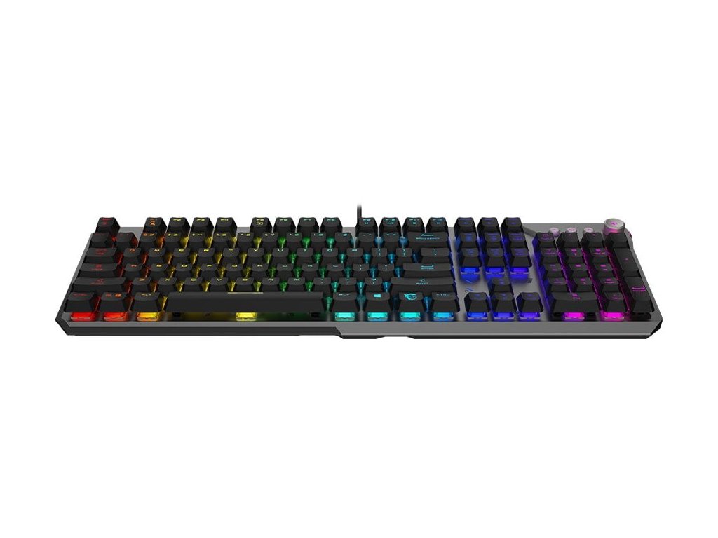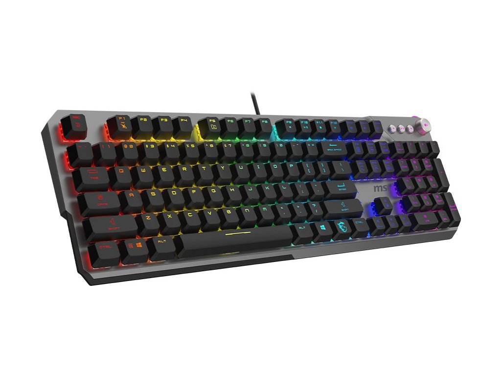 Klávesnice se pyšní robustní konstrukcí s vrchním panelem z leteckého hliníku a ergonomickým designem s plovoucími klávesami. Exkluzivní osmiúhelníkové klávesy zajišťují přesné ovládání a chytrý ovladač hlasitosti umožňuje intuitivní nastavení zvuku během hraní. S možností uložení 3 profilů přímo v klávesnici a přizpůsobitelným RGB podsvícením Mystic Light nabízí personalizaci pro každého hráče.