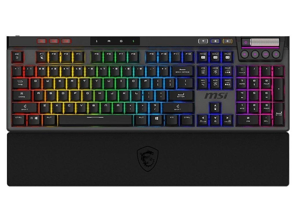 S výkonnou 4200mAh lithium-ion baterií poskytuje výdrž až 1500 hodin používání a nabíjí se za pouhých 7 hodin. Klávesnice je vybavena RGB podsvícením Mystic Light nastavitelným pro každou klávesu, magnetickou opěrkou zápěstí z paměťové pěny a pokročilou tlumicí konstrukcí pro minimalizaci nežádoucích zvuků.