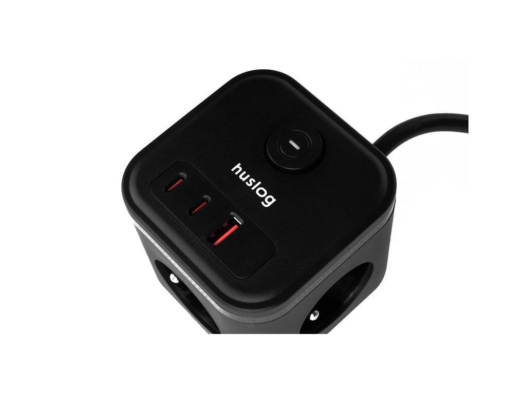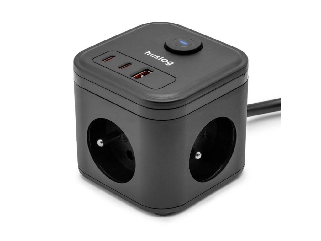 Nabíjecí stanice Huslog 20W 3xzásuvka, 2xUSB-C, 1xUSB černá