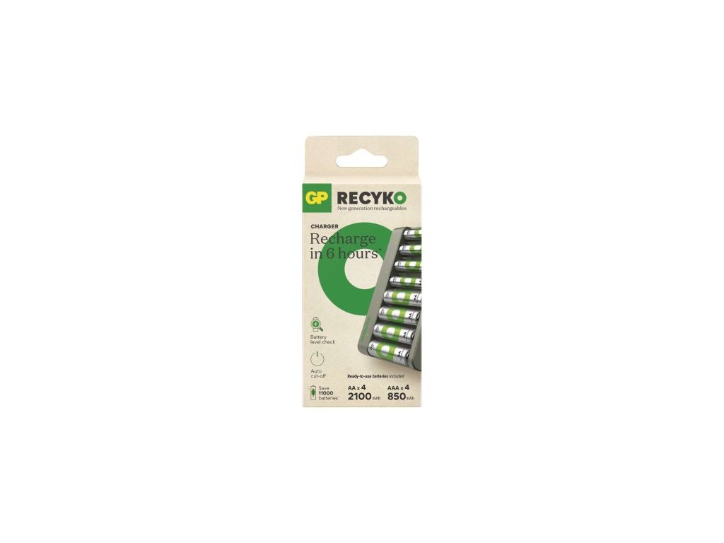 Nabíječka baterií GP Eco E821 + 4× AA 2100 + 4× AAA 850