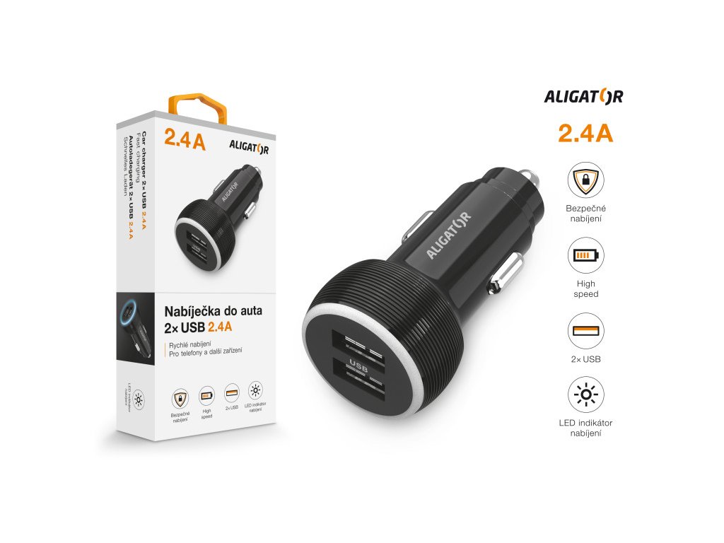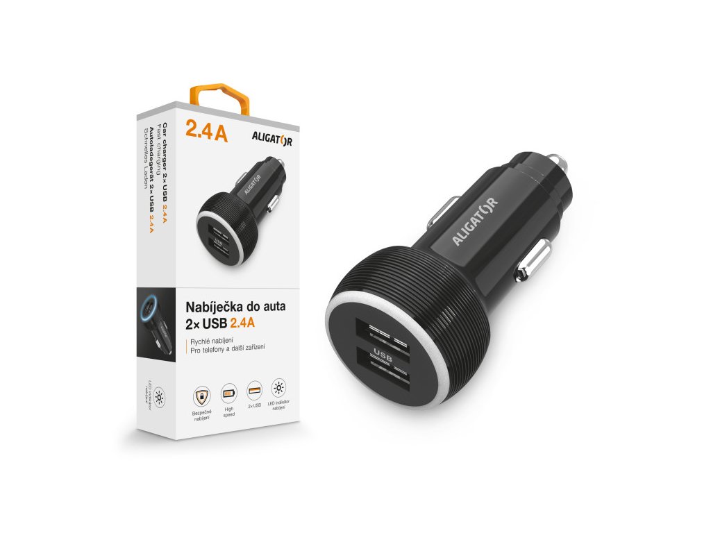 Nabíječka do auta ALIGATOR, 2xUSB 2,4A, originální černá