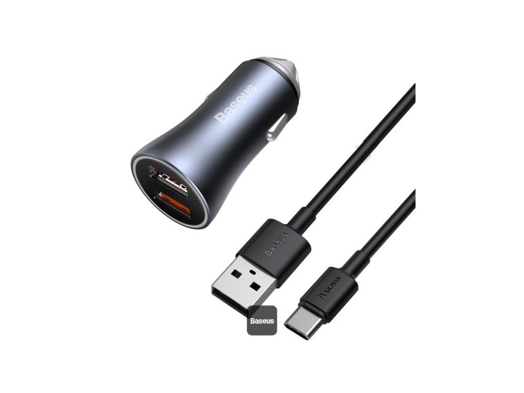 Nabíječka do auta Baseus Golden Contactor Pro, kabel USB-C 1m, celkový výkon 40W,2x USB (20W+ 20W), barva šedá