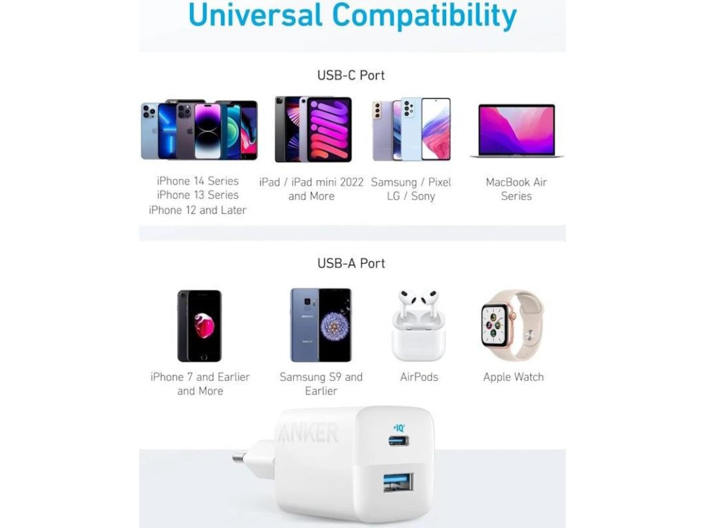 Vybavena pokročilým systémem ochrany ActiveShield tato nabíječka aktivně monitoruje teplotu pomocí dynamického snímače a čip ladiče výkonu dokonale upravuje výkon, aby chránil připojené zařízení během nabíjení. Originální výrobek od společnosti AnkerAnker je přední světový výrobce nabíjecích technologií, který má mimo jiné zkušenosti s indukčním nabíjením, nabíječkami do auta a mobilními nabíječkami. Společnost Anker se zaměřuje na inovace a kvalitu a nabízí širokou škálu produktů pro efektivní a rychlé nabíjení. Kombinovaný výkon 33 W.