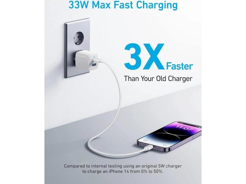 Typ nabíječky: Interní Zažijte nevídanou rychlost nabíjení s nabíječkou Anker 323 (33 W) - ultrakompaktním bleskovou energii. Díky výkonnému 33W portu USB-C můžete nabíjet až třikrát rychleji než s originální nabíječkou, zatímco přídavný port USB-A umožňuje nabíjet dvě zařízení současně. Rychlé nabíjeníPort USB-C s maximálním výkonem 33 W nabije iPhone 14 z 0 % na 50 % za pouhých 25 minut, takže se můžete rychle vrátit k práci.
