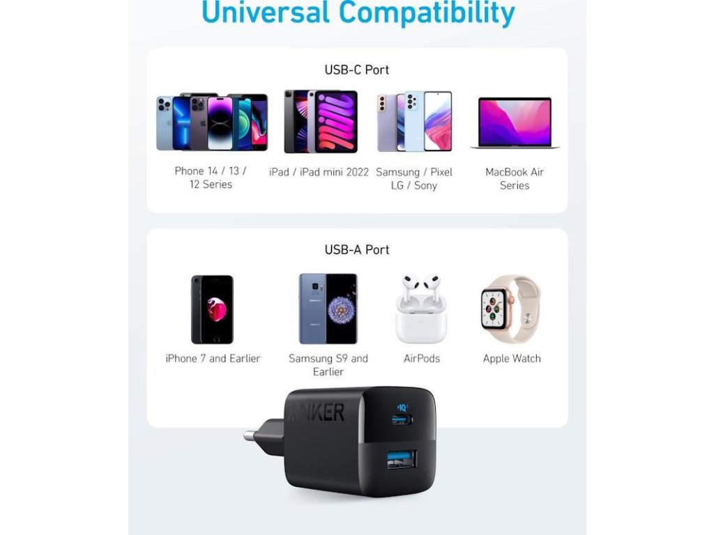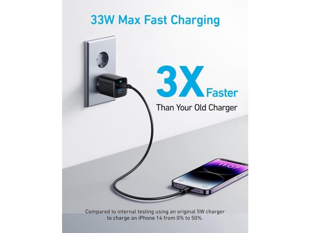 Typ nabíječky: Interní Zažijte nevídanou rychlost nabíjení s nabíječkou Anker 323 (33 W) - ultrakompaktním bleskovou energii. Díky výkonnému 33W portu USB-C můžete nabíjet až třikrát rychleji než s originální nabíječkou, zatímco přídavný port USB-A umožňuje nabíjet dvě zařízení současně. Rychlé nabíjeníPort USB-C s maximálním výkonem 33 W nabije iPhone 14 z 0 % na 50 % za pouhých 25 minut, takže se můžete rychle vrátit k práci.