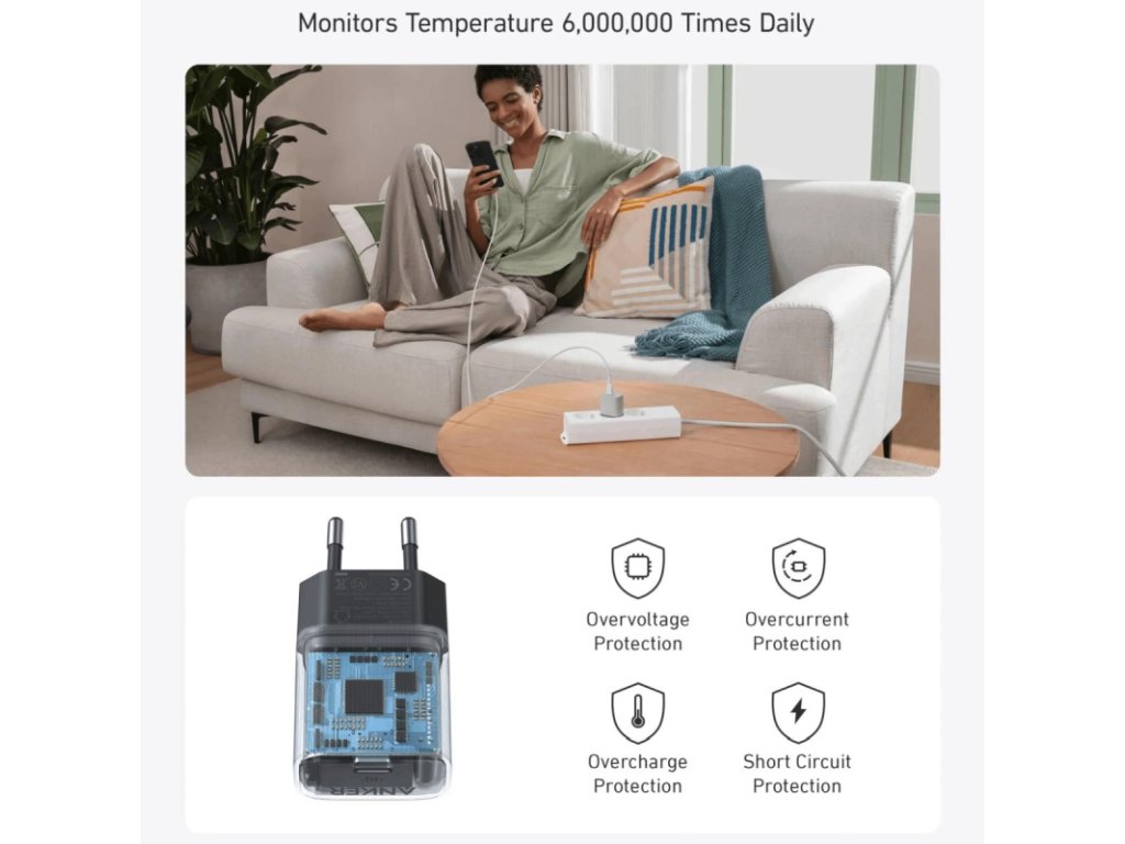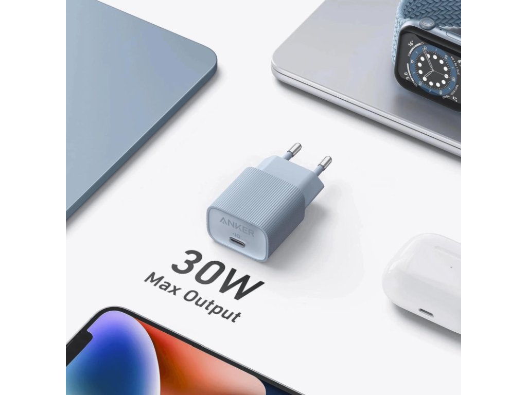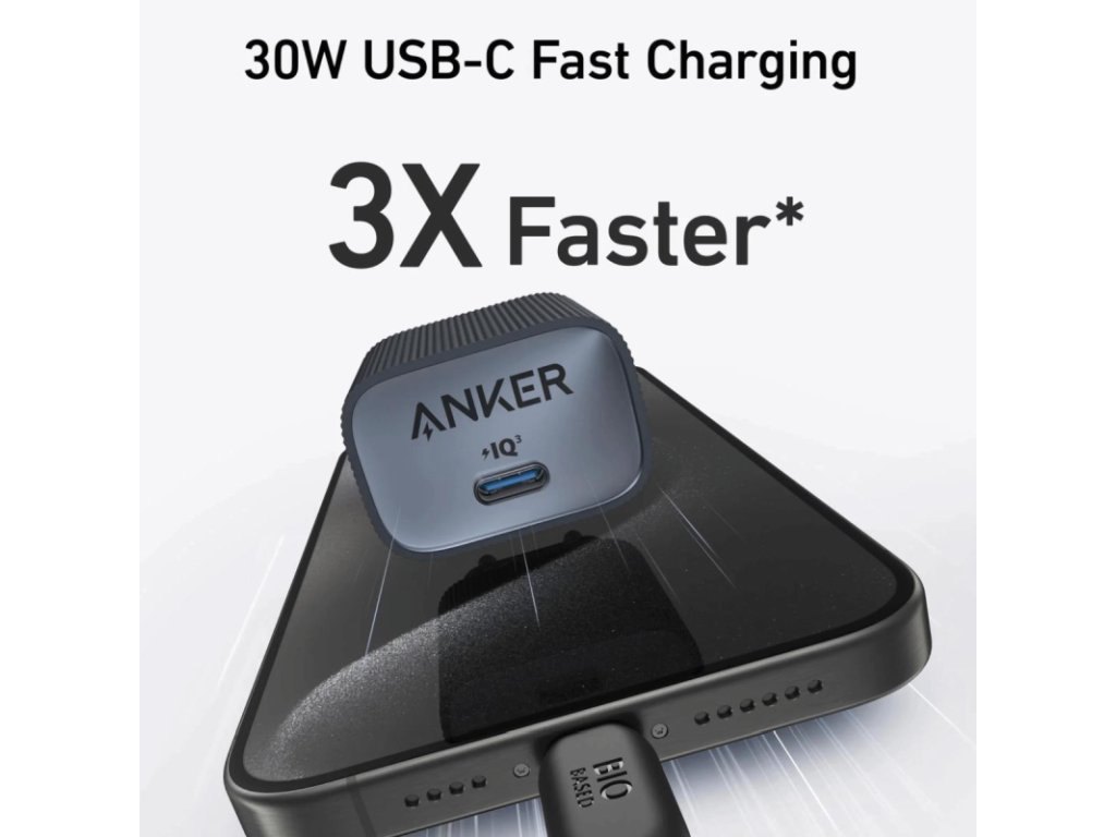 Nabíječka do sítě Anker 511 Nano 4, výkon 30W, port USB-C, technologie GaN, bezpečnostní technologie ActiveShield 3.0, Eco-friendly řešení: 75% těla z recyklovaných materiálů, udržitelný design, barva černá