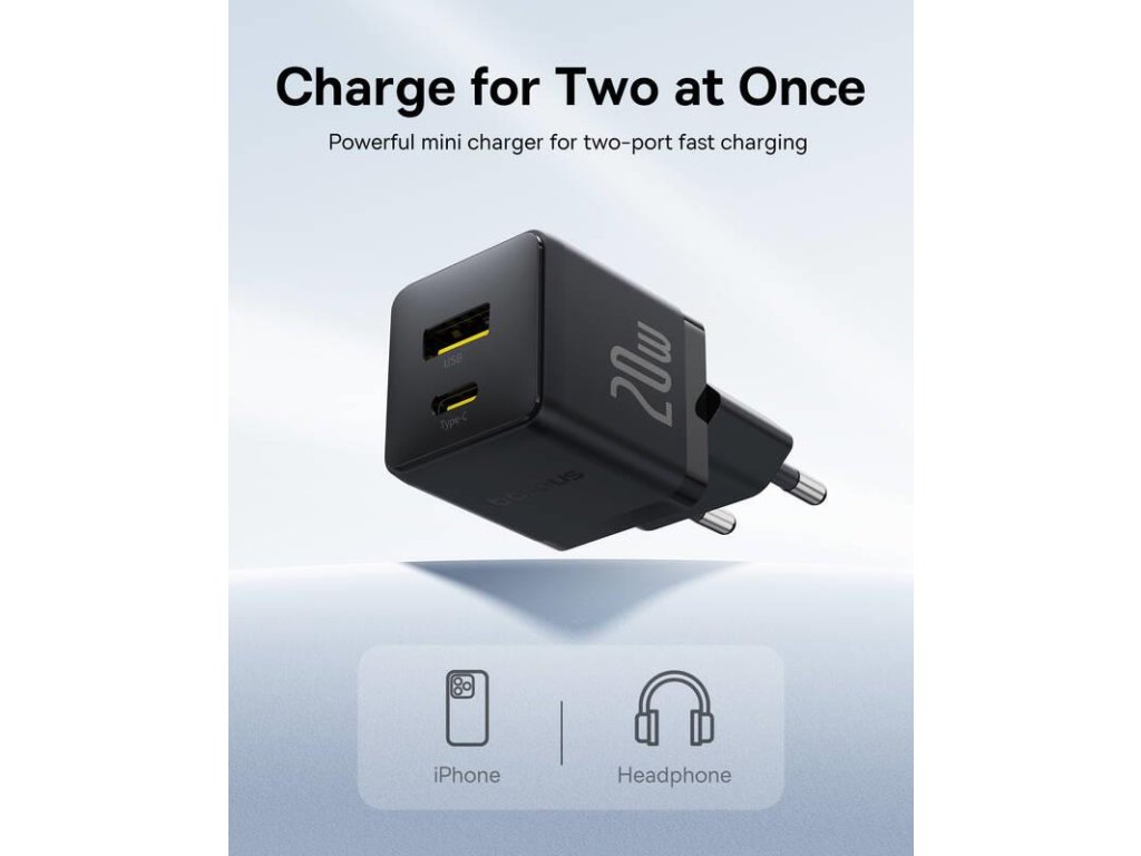 Nabíječka do sítě Baseus Palm 20W, 1xUSB, 1xUSB-C černá