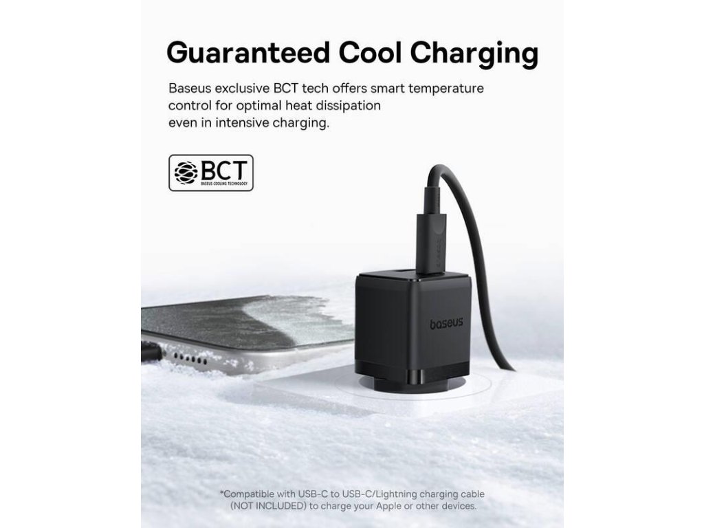Nabíječka do sítě Baseus Palm, výkon 20W, rychlonabíjení,podporuje PD3.0, QC3.0 a další protokoly rychlého nabíjení, výstup 1xUSB,garantované chladné nabíjení: exkluzivní technologie Baseus BCT,Tiny Enough,barva černá