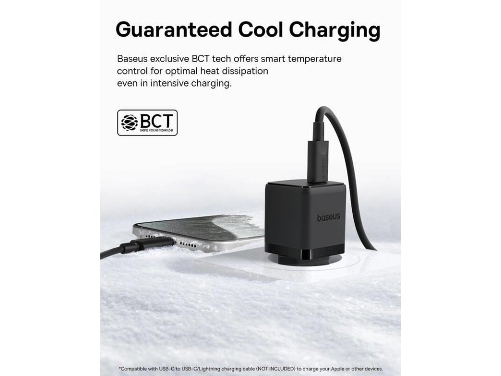 Vysoce efektivní a kompaktní nabíječka Baseus je ideální pro rychlé nabíjení moderních zařízení. Podporuje širokou škálu rychlonabíjecích protokolů, včetně PD3.0 a QC3.0, což umožňuje maximální využití výkonu pro většinu zařízení. Je vybavena exkluzivní technologií Baseus Cooling Technology (BCT), která inteligentně řídí teplotu, aby zajistila optimální odvod tepla i během intenzivního nabíjení.