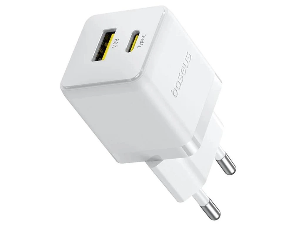 Nabíječka do sítě Baseus Palm, výkon 30W,rychlonabíjení,podporuje PD3.0, QC3.0 a další protokoly rychlého nabíjení, výstupy 1xUSB, 1xUSB-C,garantované chladné nabíjení: exkluzivní technologie Baseus BCT,Tiny Enough,barva bílá