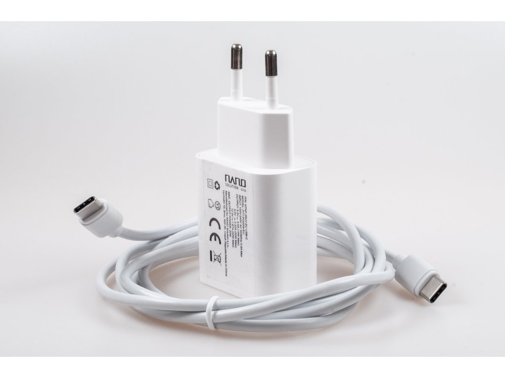 Síťová nabíječka v praktickém setu s USB-C kabelem.