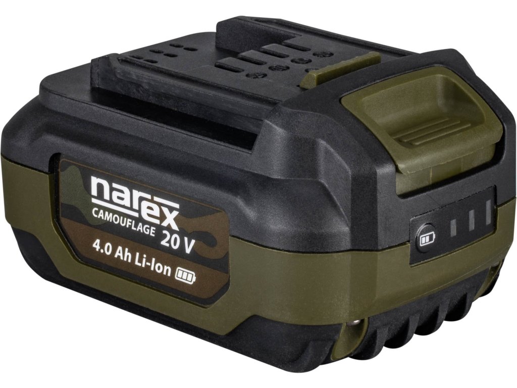 Akumulátor pro řadu CAMOUFLAGE, nabíjet v nabíječce CN 20, napětí 20V, kapacita 4,0Ah, Výkon 80Wh, Li-Ion, nabíjecí čas akumulátoru ~60 min, hmotnost 670g.