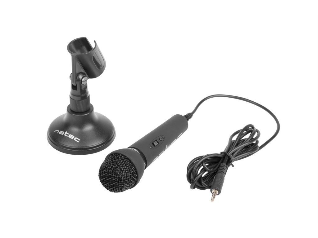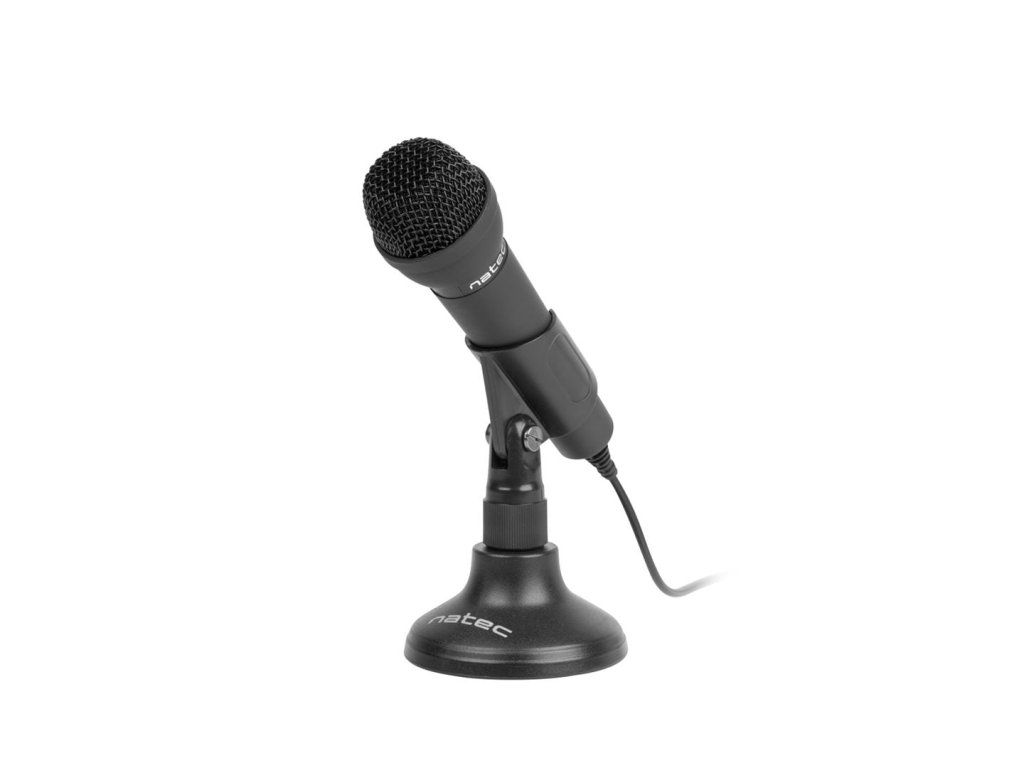 Natec Adder je elegantní stolní mikrofon vhodný pro použití doma i v kanceláři k audio a video hovorům, typ mikrofonu: Dynamický, poměr signálu k šumu (S / N): -55 dB, frekvenční odezva mikrofonu: 20 - 20 000 Hz, konektor: 1x 3,5mm Mini Jack, kabel 180 cm