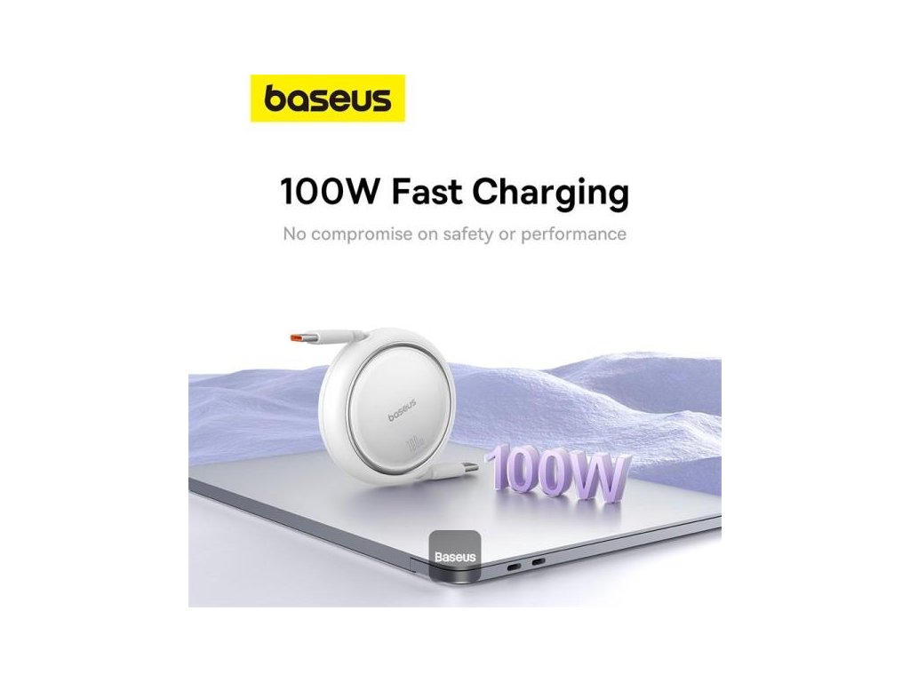 Navíjecí kabel Baseus Free2Draw USB-C/USB-C 1m 100W bílý