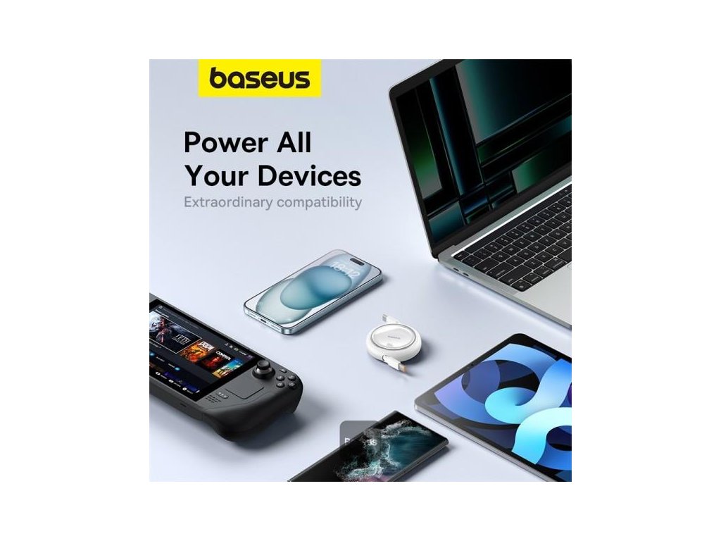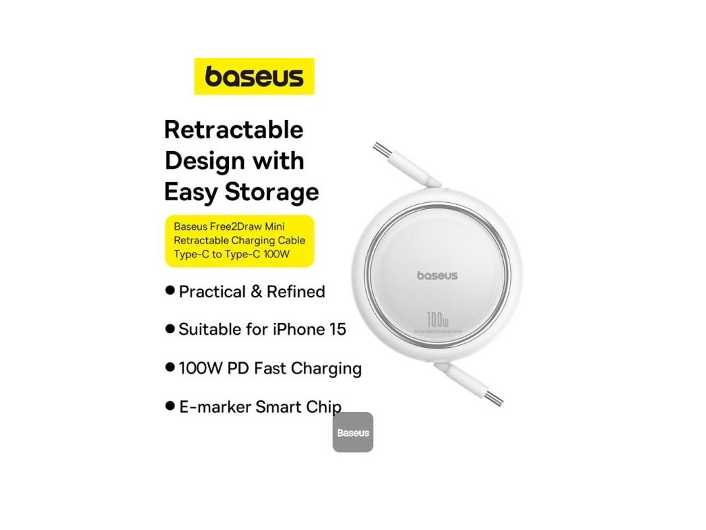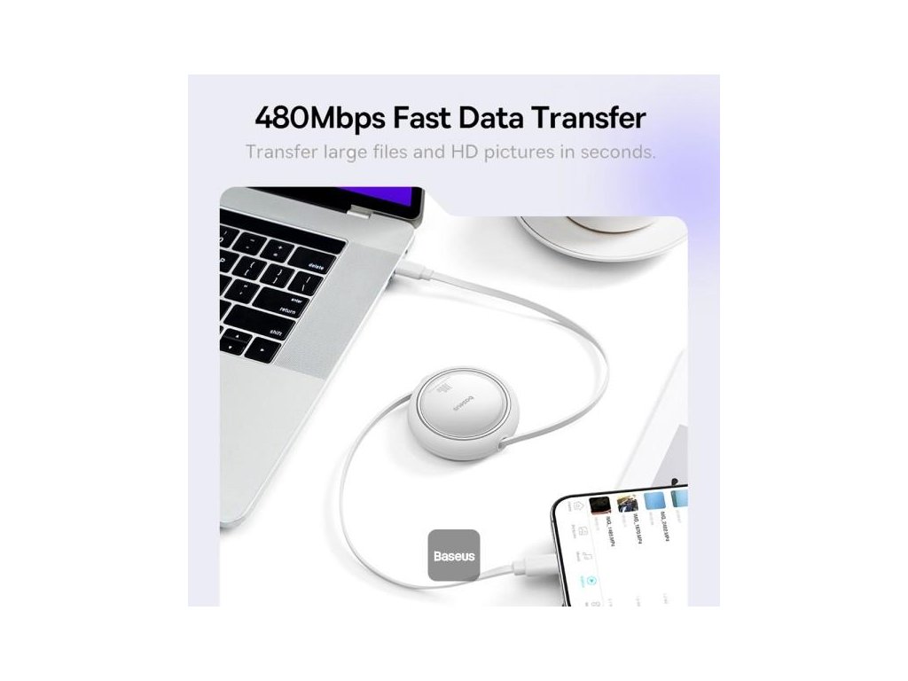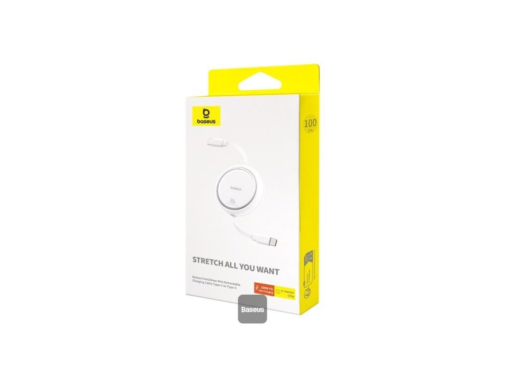 Kabel Baseus Free2Draw,navíjecí kabel USB-C/USB-C, nastavitelná délka až 1m,rychlé nabíjení s výkonem až 100W,rychlost přenosu dat až 480 Mb/s, barva bílá
