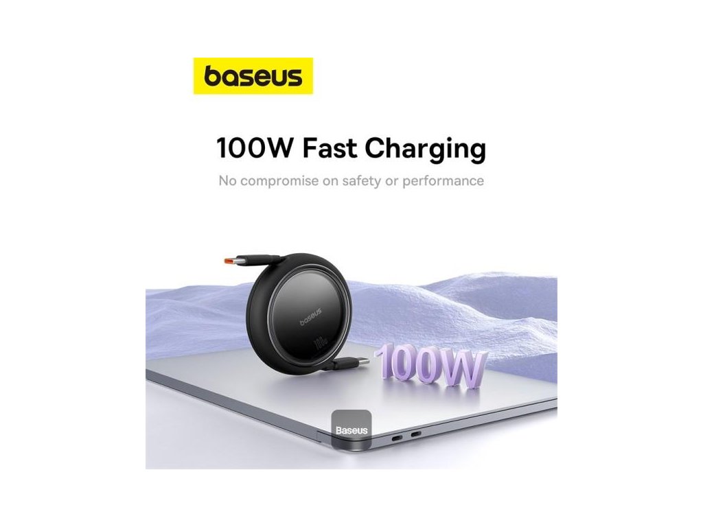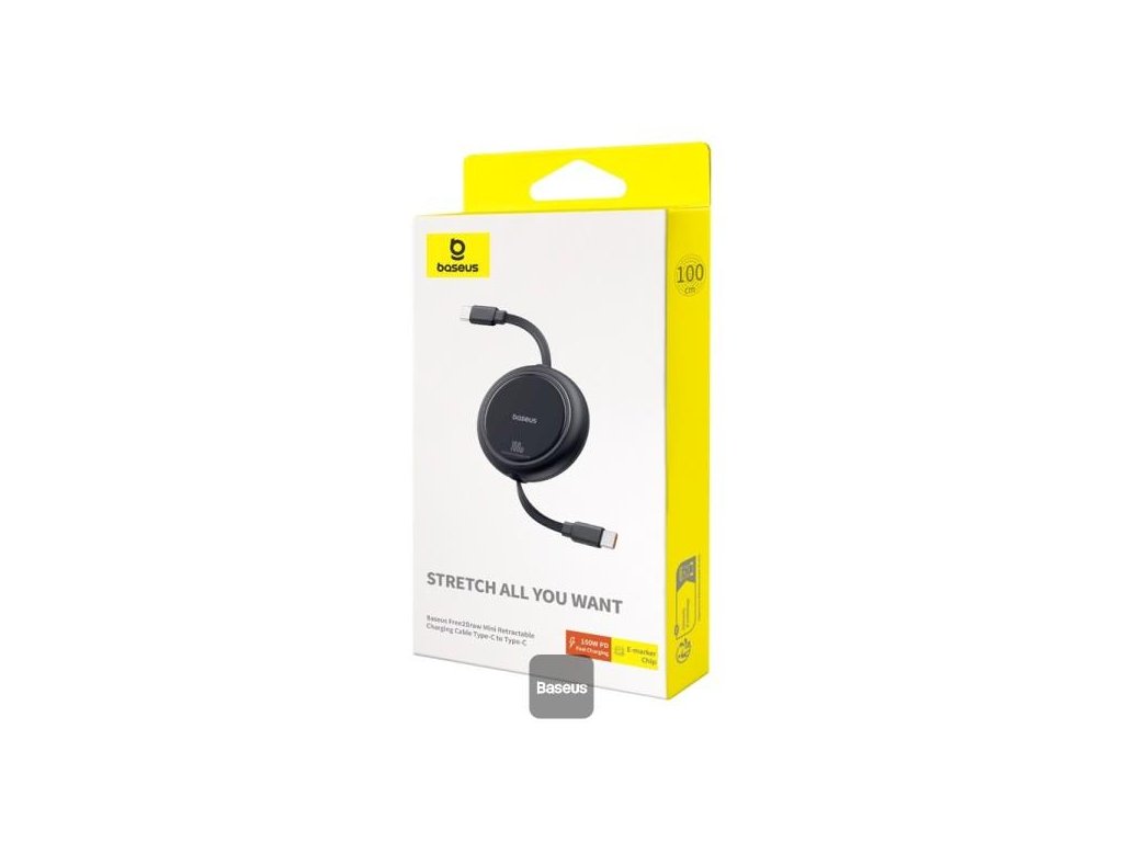 Navíjecí kabel Baseus Free2Draw USB-C/USB-C 1m 100W černý
