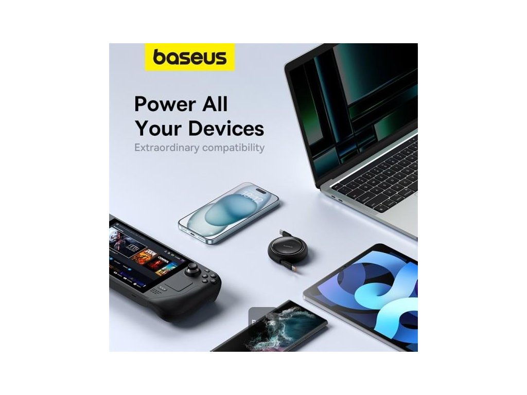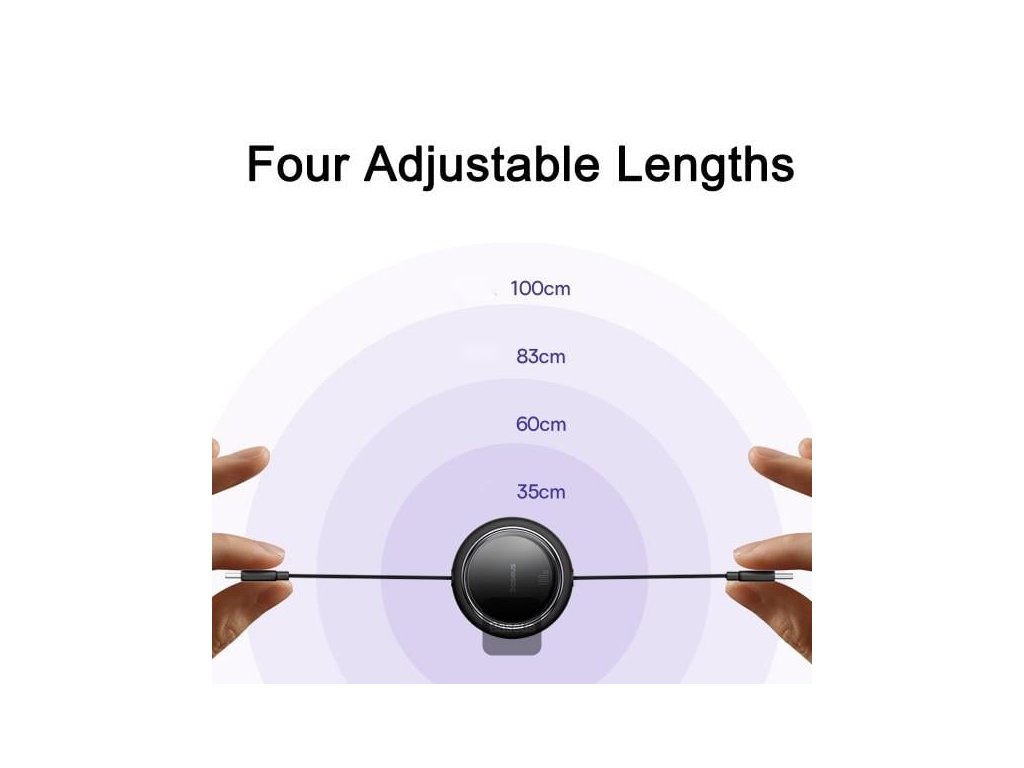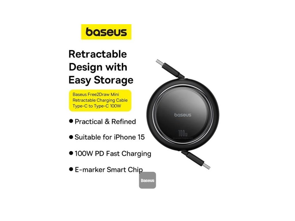 Kabel Baseus Free2Draw,navíjecí kabel USB-C/USB-C, nastavitelná délka až 1m,rychlé nabíjení s výkonem až 100W,rychlost přenosu dat až 480 Mb/s, barva černá