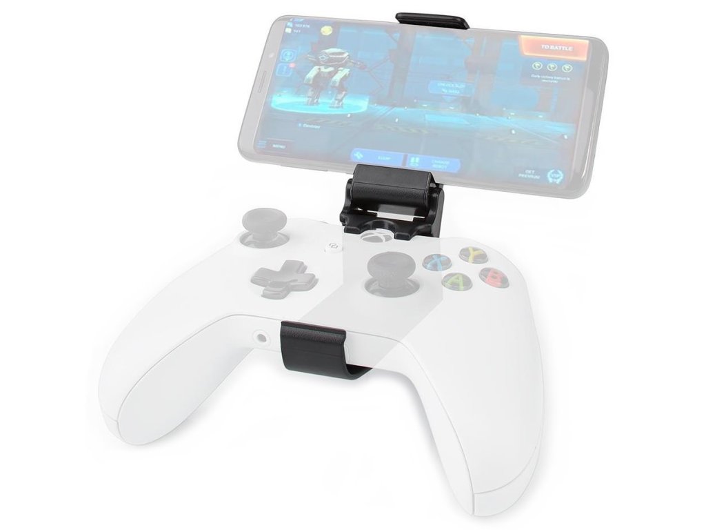 Univerzální držák pro smartphony o úhlopříčce až 7" určený k použití s ovladačem herní konzole Xbox One a X. Stačí ovladač zacvaknout do držáku, vložit mobilní telefon a vše je připraveno k hraní. Pogumovaný povrch zajistí bezpečné uchycení smartphonu. Držák lze navíc používat i jako stojánek, který oceníte zejména při sledování filmů.