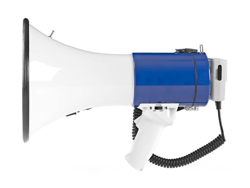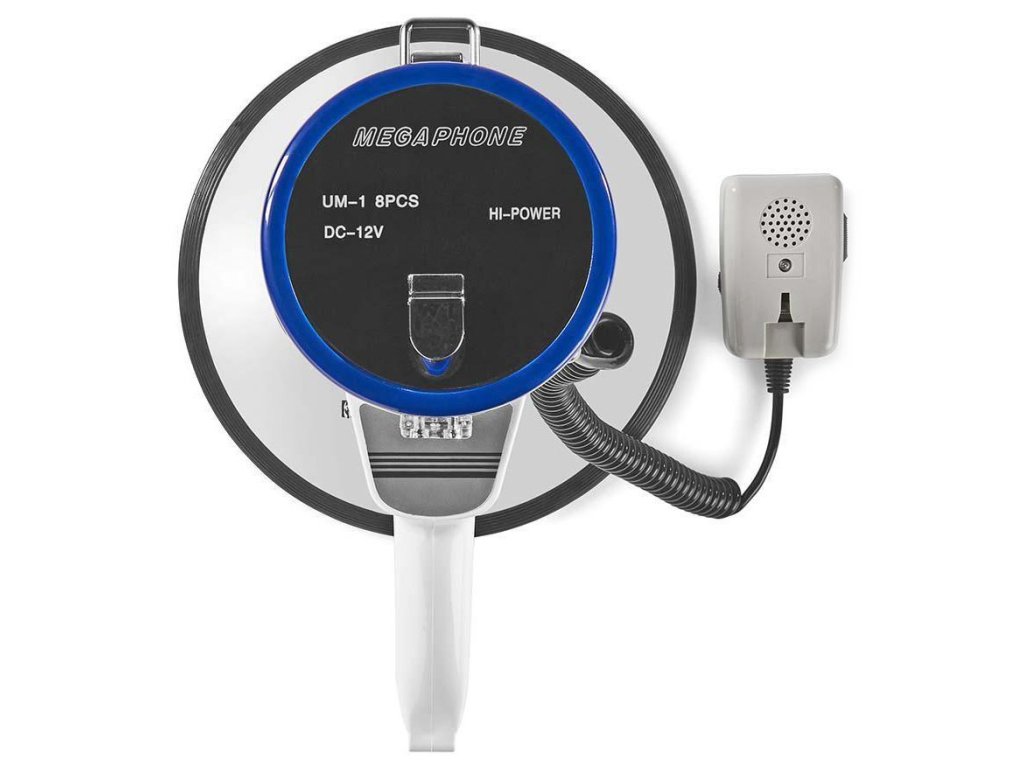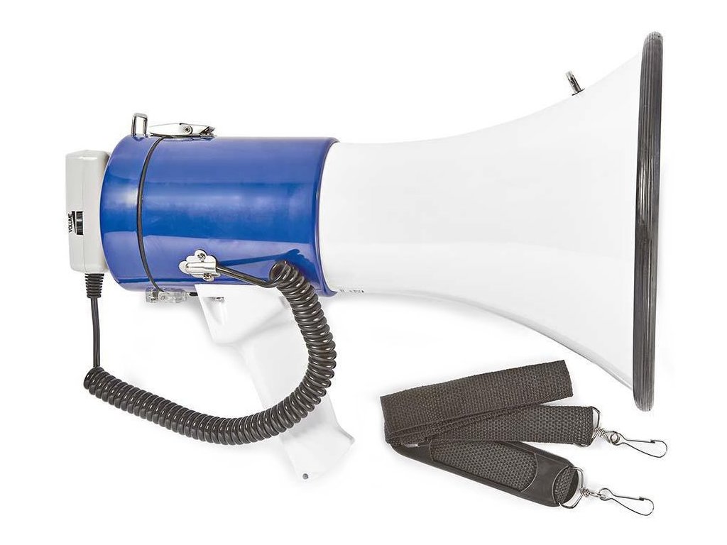 Výkonný megafon se zabudovanou sirénou a vysílacím dosahem až 1500 m spolehlivě zesílí váš hlas v případech, kdy je třeba oslovit dav lidí. Díky integrovanému zesilovači s výkonem 25 W dokáže vydávat zvuk o hlasitosti až 135 dB. Zajisté potěší také odnímatelný mikrofon, praktický ramenní popruh či regulace hlasitosti. O napájení se stará osm baterií LR20 (D), které udrží megafon v provozu až 5 hodin. Baterie nejsou součástí balení.